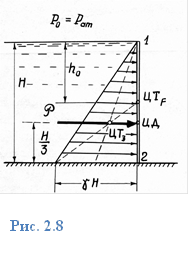 Графическое изображение распределения давления покоящейся жидкости по какой-либо поверхности называется эпюрой гидростатического давления (рис. 2.8). Закон распределения давления в покоящейся жидкости определяется основным уравнением гидростатического давления
