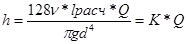 Если в этой  формуле скорость выразить через расход, а местные потери через эквивалентные длины, формула для определения потерь примет вид