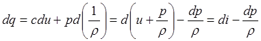 где dq - суммарная теплота, подведенная к 1 кг массы газа извне, du - изменение внутренней энергии 1 кг массы газа,