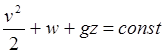 Значение const, вообще говоря, различно для разных линий тока. Это уравнение называют уравнением Бернулли.