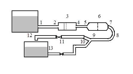 | 1 - вход в трубу, 2 - внезапное расширение, 3 - сетка, 4 - внезапное сужение, Рекомендуемые материалыГидравлический расчет гидросистемы стенда для испытания центробежных насосов + задачи -51% Общие теоремы динамики Курсовая. Система разгрузки бензина из железнодорожной цистерны FREE И.И. Куколевский, Л.Г. Подвидз - Сборник задач по машиностроительной гидравлике Определение аэродинамических характеристик изолированного профиля в дозвуковом плоском потоке Гидравлический расчет гидросистемы наполнения водой из скважины технологических емкостей (13 вариант) 5 - диффузор, 6 - диафрагма, 7 - конфузор, | 8 - поворот, 9 - тройник, 10 - колено, 11 - вентили, задвижки, 12 - поворот, 13 - вход в резервуар. |