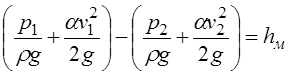 где hw - суммарные (местные и по длине) потери напора между сечениями 1 и 2, которые можно представить в виде зависимости