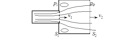 Пусть скорость течения уменьшается при этом от v1 до v2.