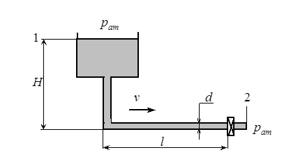 При заданных длине l и диаметре трубопровода d необходимо определить скорость движения жидкости v и расход Q.