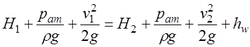 Уравнение Бернулли для двух сечений имеет следующий вид