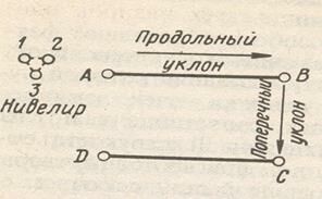 Для построения в натуре линий проектных уклонов используют нивелиры, теодолиты, а также лазерные приборы. Сначала конечные точки линии АВ (рисунок 4) устанавливают на проектные отметки. Если дана отметка только одной точки, например А, и проектный уклон i, то отметку другой точки В можно вычислить по формуле: