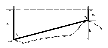 Выполняют с помощью сообщающихся сосудов, заполненных одной жидкостью. Жидкость устанавливается в обоих сосудах на одном уровне, на одной отметке. Пусть высота столба жидкости в первом сосуде будет c1, а во втором c2; тогда превышение точки В относительно точки А будет равно: