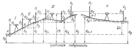 Если для этого необходимо несколько станций, то нивелирование называется сложным.