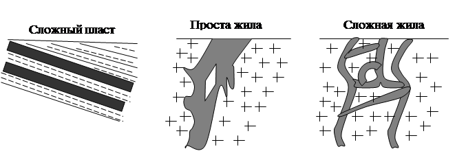 1. Изометрические тела. Приблизительно равновелики в трёх измерениях. К ним относятся шток,гнёзда, штокверки.