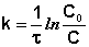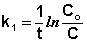 Константу интегрирования g определим из начальных условий: в момент времени t = 0 концентрация С равна начальной концентрации Со. Отсюда следует, что g = ln Со. Получаем: