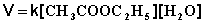 Если проводить эту реакцию при близких концентрациях этилацетата и воды, то общий порядок реакции равен двум и кинетическое уравнение имеет следующий вид:
