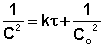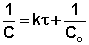 Т.о., для реакций второго порядка, имеющих кинетическое уравнение вида (II.14), характерна линейная зависимость обратной концентрации от времени (рис. 2.4) и константа скорости равна тангенсу угла наклона прямой к оси времени: