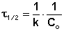 Как видно из полученного выражения, период полупревращения реакции первого порядка не зависит от начальной концентрации исходного вещества.