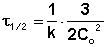 Метод определения времени полупревращения заключается в определении t1/2 для нескольких начальных концентраций. Как видно из приведённых в таблице уравнений, для реакции первого порядка время полупревращения не зависит от Co, для реакции второго порядка – обратно пропорционально Co, и для реакции третьего порядка – обратно пропорционально квадрату начальной концентрации.