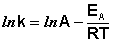 Здесь С – некоторая константа. Постулировав, что С = 0, получаем уравнение Аррениуса, где EA – энергия активации: