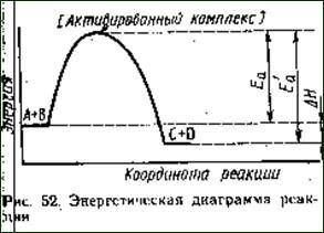 Таким образом, для прохождения экзотермической реакции в прямом направлении требуется, чтобы Еапр<Еаобр. Если же реакция эндотермична (DН>0), необходима энергетическа «накачка» системы, тогда Еапр>Еаобр