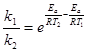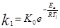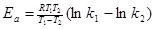 Энрегию активации возможно определить, измерив скорость исследуемой реакции при различных температурах Т1 и Т2. Для каждой из температур имеем: