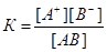 Процесс диссоциации слабых электролитов является обратимым. Для электролита вида АВ процесс диссоциации можно записать так: