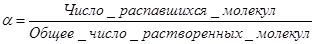 Значение a всегда меньше единицы. Умножая a на 100, получают долю ионизированных молекул в процентах.