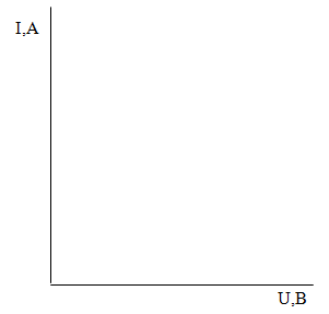 Минимальное напряжение, которое необходимо приложить к электродам, чтобы через электрохимическую ячейку проходил ток значительной силы и начался электролиз с видимым выделением на обоих электродах продуктов электролиза, называется напряжением разложения. Напряжение разложения определяют, проводя электролиз прс применением инертных (платиновых, графитовых и др.) электродов при постепенно увеличиваюшимся напряжении между электродами. По измеренным значениям напряжения и силы тока строят зависимость напряжения от силы тока ( Рисунок1). Затем экстраполируют прямолинейный участок кривой I –U на ось напряжения. Величина отрезка, отсекаемого на оси абсцисс при величине тока, равной нулю (точка Е), представляет собой напряжение разложения.