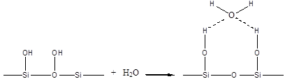 Гидроксилированная поверхность силикагеля удерживает воду по схеме:
