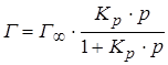 Для сорбции газов и паров, уравнение Лэнгмюра имеет вид: