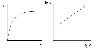 Фрейндлих предположил, что адсорбция зависит от давления и концентрации и предложил эмпирическое уравнение, которое имеет вид степенной функции: