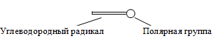 Характерной особенностью строения ПАВ является их дифильность, т.е. молекула состоит из двух частей — полярной группы и неполярного углеводородного радикала. Обладающая значительным дипольным моментом и хорошо гидратирующаяся полярная группа (ОН, СООН, RН2) обусловливает сродство ПАВ к воде. Гидрофобный углеводородный радикал является причиной неполной растворимости этих соединений.