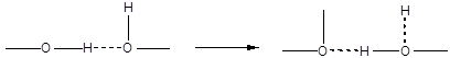 Второе свойство заключается в том, что при сближении двух молекул до расстояния, допускающего переход протона, последний притягивается к обеим атомам и удерживает один ковалентной, а другой водородной связью, причем, между ними может происходить перемещение по схеме: