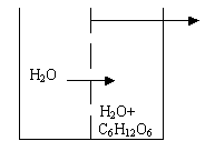 Определение осмотического давления растворов производится следующим образом. Во внешний сосуд наливается чистая вода, стенки внутреннего сосуда представляют собой полупроницаемую мембрану. Внутренний сосуд снабжен оттянутой горловиной и мерительной линейкой. Во внутреннем сосуде находится какой - либо раствор, например, сахара.