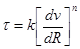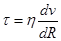 - напряжение внутреннего трения; dv/dR - градиент скорости по радиусу трубы или относительное изменение скорости по направлению, перпендикулярному к направлению течения, т.е. приращением скорости на единицу длины нормали; r — коэффициент (касательное усилие на единицу площади, приложенное к слоям жидкости, отстоящим друг от друга на расстоянии, равном единице длины, при единичной разности скоростей между ними).
