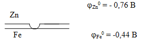 1. Покрывающий (защитный) металл может быть электрохимически более активным, чем защищаемый. В этом случае при нарушении сплошности покрытия корродировать будет металл с более отрицательным потенциалом (металл покрытия). Такое покрытие называется анодным, например оцинкованное  железо.