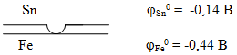 2. Покрывающий (защищающий) металл может быть электрохимически менее активным, чем защищаемый. В этом случае при нарушении сплошности корродирует основной (защищаемый) металл. Покрытие в этом случае называется катодным, например белая жесть.