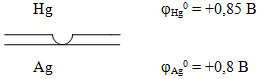 Пример 8. Пластинка из Hg, покрытая Ag, опущена в концентрированную серную кислоту. Определить вид покрытия. Нарушена сплошность. Написать уравнение реакции и анодные и катодные процессы, протекающие при коррозии.