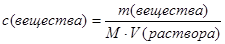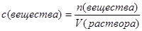 3. Молярная концентрация вещества с численно равна отношению химического количества растворенного вещества к объему раствора: