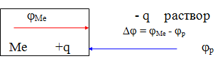 Рис. 1. Схема скачка потенциала на границе металл-раствор.