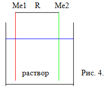 то на каждом металле возникнет свой скачок потенциала, разность между которыми (Dj1 - Dj2) не равна нулю. При замыкании этих электродов на внешнее сопротивление R (рис. 4) в цепи можно обнаружить длительно протекающий ток.