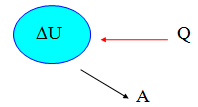 Первый закон (постулат) термодинимики устанавливает, что если к закрытой системе подвести количество тепла Q, и при этом система совершит над окружающей средой работу А,