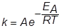где А-постоянная, ЕА- энергия активации (кДж/моль или ккал/моль) -энергия, которую необходимо затратить для перевода 1 моля вещества в реакционно-спобное состояние, R- газовая постоянная, Т- температура (К).