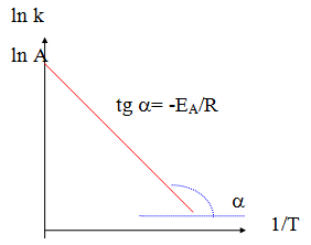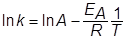 Логарифмируя уравнение Аррениуса, получаем линейную зависимость ln k от обратной температуры 1/Т