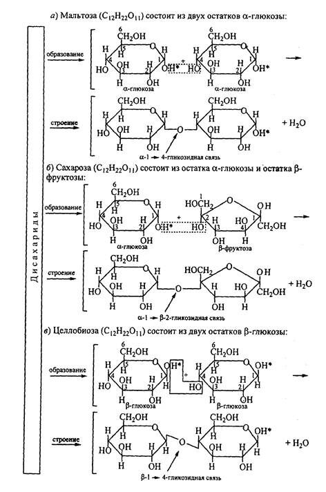Рис. 4.5. Образование и строение молекул дисахаридов
