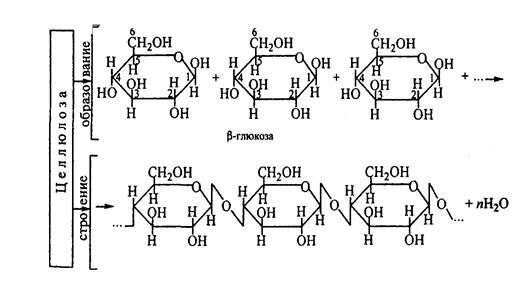 Рис. 4.7. Образование и строение целлюлозы (клетчатки)