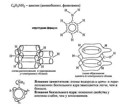 Рис. 5.3. Структурная формула и строение молекулы анилина
