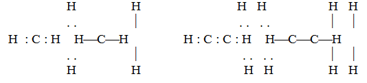 Рис. 1 Электронная и обычная структурные формулы метана и этана.