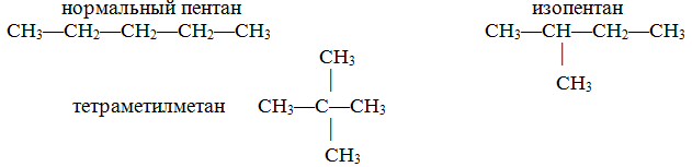 Для углеводорода пентана C5H12 различия в последовательности связи углеводородных атомов приводят к образованию трех изомеров: