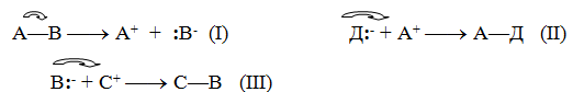 Изучение химического поведения – реакционной способности органических веществ показало, что разрыв ковалентной связи между атомами может осуществляться так, что электронная пара остается у одного их двух ранее связанных атомов:
