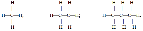 Для каждого из трех простейших углеводородов (метана, этана и пропана) возможно по одной структурной формуле: