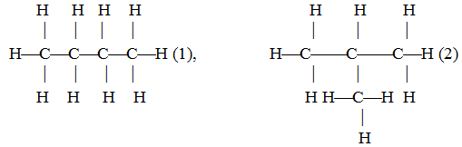 Первый изомер углеводорода бутана C4H10 имеет прямую (нормальную) цепь. Второй изомер – изобутан – разветвленную цепь атомов углерода.