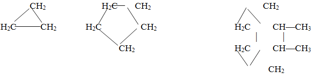 Циклоалканы. Насыщенные углеводороды с карбоциклическими кольцами (циклоалканы) называют, добавляя приставку цикло- к названию соответствующего нормального алкана: