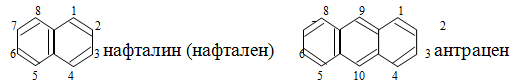 В конденсированных полициклических углеводородах нумеруют углеродные атомы следующим образом: